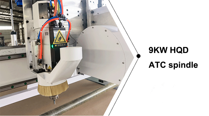 2. Three axes adopt Taiwan Hiwin high precision square guide rails; X and Y axes adopt helical rack and pinion transmission, fast working and high efficiency , Z axis adopts Taiwan TBI ball screw,with high precision and longevity.